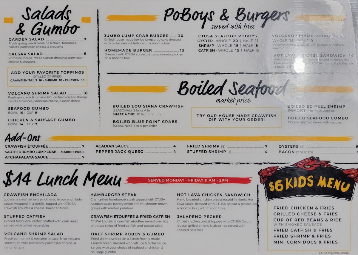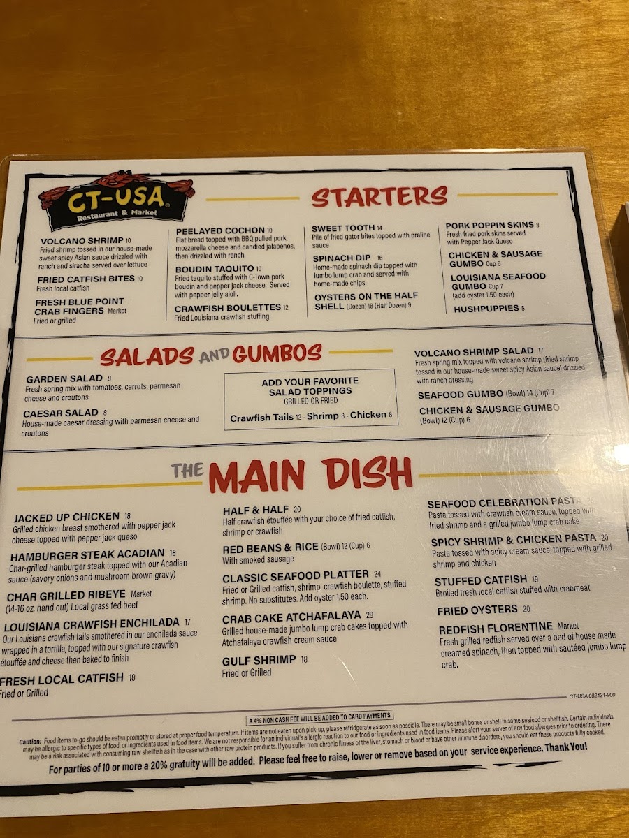 Known for its welcoming ambiance and attentive service, CT-USA ensures that every dining experience feels special. Patrons appreciate the quick service, with many dishes arriving hot and fresh within minutes. The fried oysters and crawfish enchiladas are frequently mentioned as must-try items, reflecting the restaurant's commitment to quality.