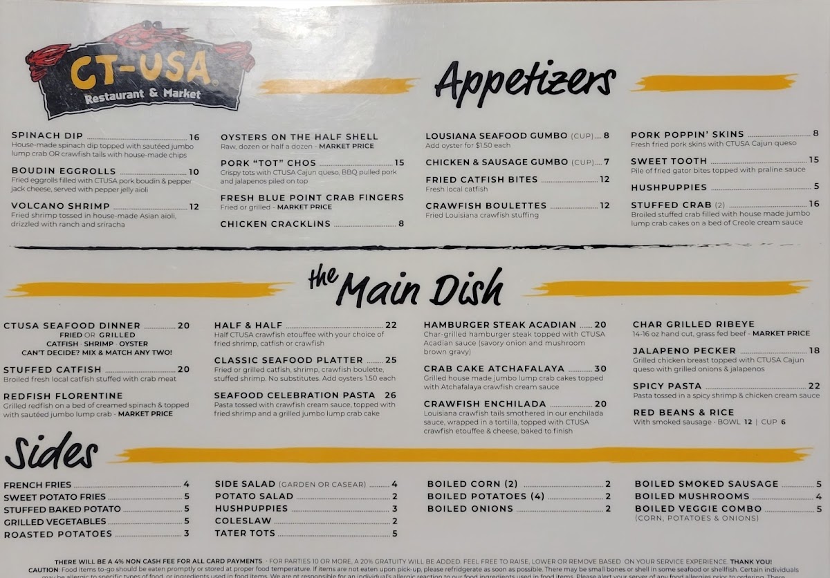 Whether you're a local or just passing through, CT-USA Restaurant & Market is a destination that guarantees memorable meals, friendly service, and an atmosphere that feels like home. Don't miss the chance to savor the flavors of Southern cuisine!